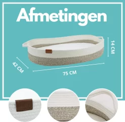 De verschoningsmand is gemaakt van hoge kwaliteit gevlochten katoen. Dit materiaal staat bekend om zijn flexibele, zachte en zeer sterke eigenschappen. In tegenstelling tot andere manden gemaakt van zeegras, rotan of bamboe is gevlochten katoen extra zacht en beschermend voor de gevoelige huid van baby’s.