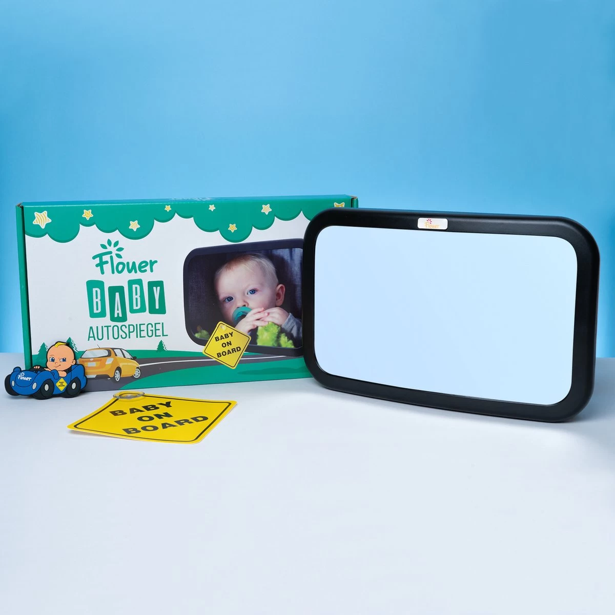 Iedere ouder houdt dag in dag uit hun baby goed in de gaten. Een omgekeerd baby stoeltje in de auto maakt dit echter behoorlijk lastig. Onze “Achterbank Spiegel met Baby on Board Sticker” helpt dat veilige gevoel weer terug te krijgen. Niet meer onnodig de auto uit nadat je een onbekend geluid hoorde vanaf de achterbank. Met deze baby autospiegel kun je met 1 blik je kindje zien en met een gerust hart door blijven rijden. Daarnaast zal de “Baby on Board Sticker” het gedrag van andere bestuurders positief beinvloeden, wat zal leiden tot nog veiligere verkeerssituaties.