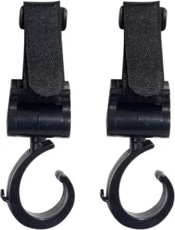 Deze unieke stevige haken zijn ideaal voor de wandelwagen of buggy. De flexibele hangers zijn zeer eenvoudig te gebruiken en te bevestigen. De haken kan 360 graden draaien en kunnen tot wel 20 kg gewicht dragen, doordat het materiaal van Nylon is gemaakt.