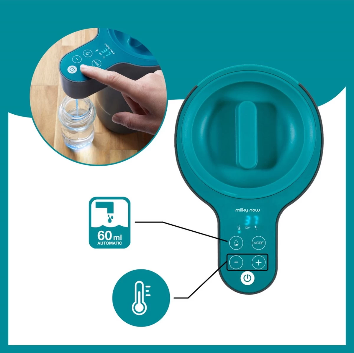 | Aanvullende functies | eenvoudig de gewenste temperatuur instellen grote inhoud, bereid snel 12 zuigflessen functie water warmhouden functie 100 graden knop Clean voor eenvoudig te reinigen |