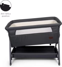 In de Elia co-sleeper van Baninni slaapt je baby veilig naast jou. Deze co-sleeper kan met riemen veilig bevestigd worden aan het bed maar kan ook dienst doen als losstaand wiegje. Wanneer je naast je baby slaapt wordt de vertrouwensband versterkt en kan je jouw baby makkelijk eten geven. Het bedje kan op verschillende hoogtes en licht hellend ingesteld worden om de spijsvertering van je kindje te verbeteren.KenmerkenCo-sleeper met zijopening of losstaande wiegEenvoudige montageVerstelbaar in 7 hoogtes (matrashoogte 53 cm tot 65 cm)Veilig bevestigingssysteem met riemenAnti-reflux standIncl. matrasje (81 cm x 49 cm x 6,5 cm)OpbergmandGeschikt vanaf de geboorte tot 9 kgAfmetingen: 92 cm x 55 cm x 70,5-82 cmGewicht: 8 kg