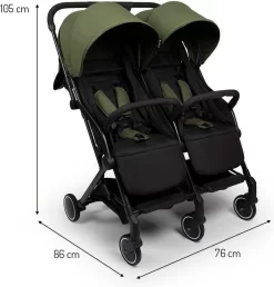 De Adige duo buggy van Baninni is een side-by-side wandelwagen voor duo’s en tweelingen. Voor optimaal gebruiksgemak is de lichtgewicht buggy is in en uit te vouwen met één hand. Ook is de duo buggy 76 cm breed waardoor hij door standaard deuropening kan. De buggy is compact inklapbaar en kan daardoor makkelijk opgeborgen worden. De rugleuningen van deze dubbele wandelwagen kunnen afzonderlijk versteld worden en ook de voetensteunen kan je aanpassen. De trendy bekleding geeft de Adige een trendy look. Elk zitje is voorzien van een 5-puntsgordel en een afneembare voorbeugel. In de boodschappenmandjes onderaan kan je een luiertas of speelgoed bij de hand houden. De Adige duo buggy is geschikt voor kinderen van 0 tot 36 maanden en kan een maximaal gewicht dragen van 15 kg per zitje. Kenmerken Baninni Adige duo buggy:•Duo wandelwagen•In- en uitvouwen met één hand •Breedte 76 cm: past door standaard deuren•Compact inklapbaar •Afzonderlijk verstelbare rugleuning •Afzonderlijk verstelbare voetensteun •Afzonderlijk verstelbare zonnekap•Afneembare voorbeugel •5-puntsgordel •Boodschappenmand •0 – 36 maanden (max. 15kg per zitje)•Zwenkwielen met rubberen band •Centraal remsysteem •Afmetingen open: 76 cm x 86 cm x 105 cm•Afmetingen dicht: 76 cm x 26 cm x 64 cm •Gewicht product: 11,6 kg