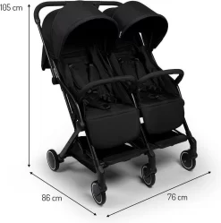 De Adige duo buggy van Baninni is een side-by-side wandelwagen voor duo’s en tweelingen. Voor optimaal gebruiksgemak is de lichtgewicht buggy is in en uit te vouwen met één hand. Ook is de duo buggy 76 cm breed waardoor hij door standaard deuropening kan. De buggy is compact inklapbaar en kan daardoor makkelijk opgeborgen worden. De rugleuningen van deze dubbele wandelwagen kunnen afzonderlijk versteld worden en ook de voetensteunen kan je aanpassen. De trendy bekleding geeft de Adige een trendy look. Elk zitje is voorzien van een 5-puntsgordel en een afneembare voorbeugel. In de boodschappenmandjes onderaan kan je een luiertas of speelgoed bij de hand houden. De Adige duo buggy is geschikt voor kinderen van 0 tot 36 maanden en kan een maximaal gewicht dragen van 15 kg per zitje. Kenmerken Baninni Adige duo buggy:•Duo wandelwagen•In- en uitvouwen met één hand •Breedte 76 cm: past door standaard deuren•Compact inklapbaar •Afzonderlijk verstelbare rugleuning •Afzonderlijk verstelbare voetensteun •Afzonderlijk verstelbare zonnekap•Afneembare voorbeugel •5-puntsgordel •Boodschappenmand •0 – 36 maanden (max. 15kg per zitje)•Zwenkwielen met rubberen band •Centraal remsysteem •Afmetingen open: 76 cm x 86 cm x 105 cm•Afmetingen dicht: 76 cm x 26 cm x 64 cm •Gewicht product: 11,6 kg