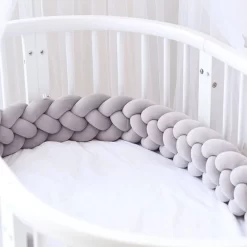 Met onze XL bedbumper van 3 meter slaapt je baby in stijl, veilig en comfortabel. Voorkom dat je baby zich tegen de randen van het bedje, de box of ledikant stoot. Daarnaast voorziet deze bedomrander je baby van geborgenheid en houdt het tevens de tocht buiten het bedje. Deze gevlochten bedbumper is grijs van kleur, gemaakt van 100% katoen en past in elk interieur.