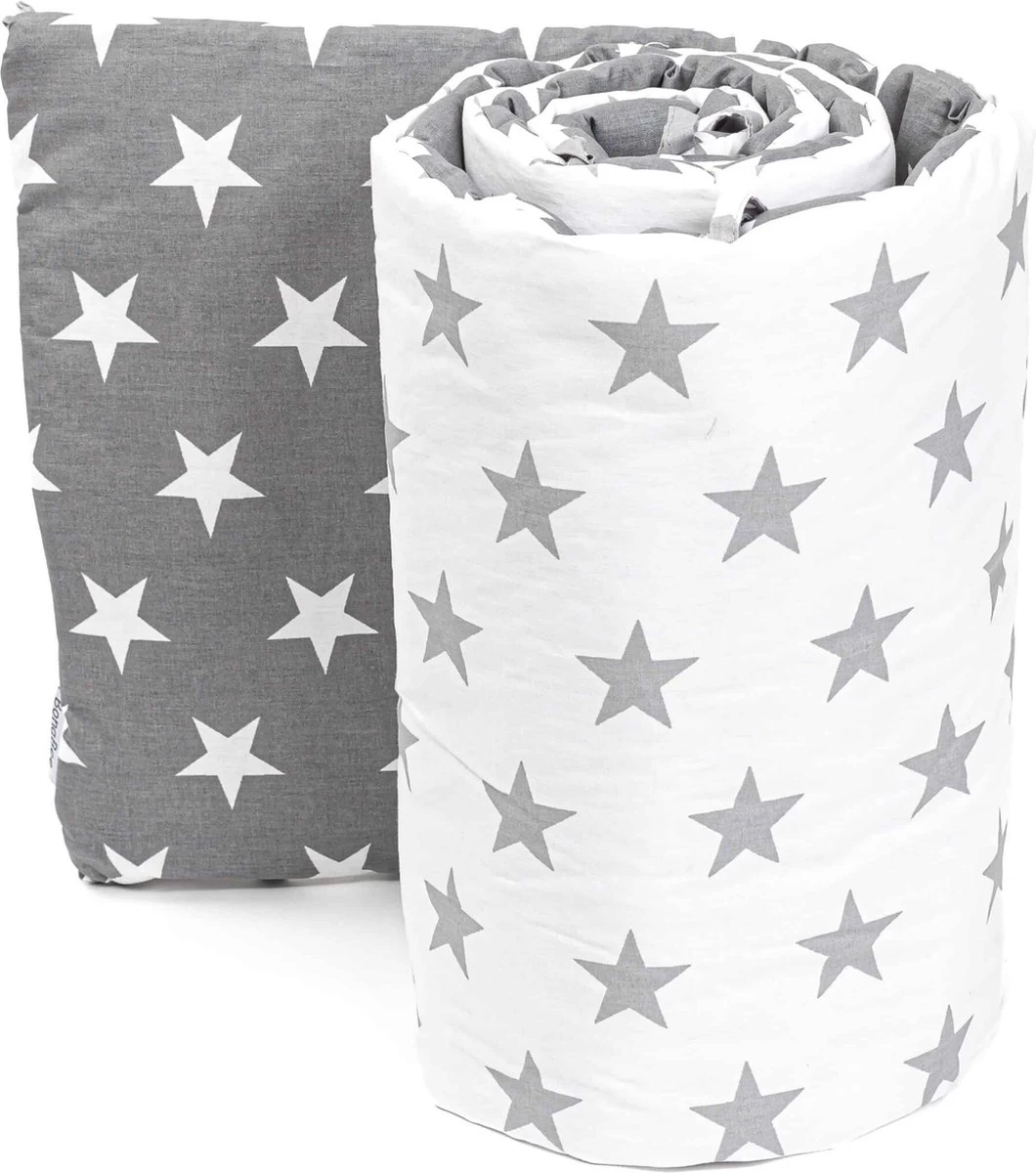 Met onze bedomrander Hollywood Grijs slaapt uw baby in alle stijl en comfort. De bedomrander is gemaakt van 100% katoen en opgevuld met 100% polyester.