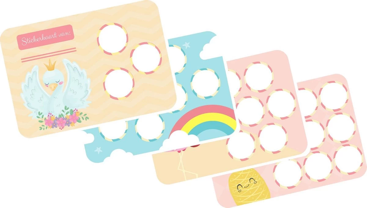 Stickerkaartensets met stickers specifiek voor meisjes, voor wanneer je de Zindelijkheidsbox opnieuw wilt gebruiken, of wanneer je aan een beloningssysteem voldoende hebt bij de zindelijkheidstraining. Natuurlijk kun je ze ook voor andere zaken gebruiken waarbij je je kind wilt belonen.