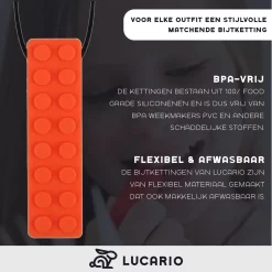 Wij van Lucario vinden de gezondheid van de kauwer het belangrijkst. Wanneer er wordt gekauwd op gummen of pennen kunnen er giftige stoffen vrijkomen wat slecht is voor de gezondheid. Daarom hebben wij een unieke bijtketting ontwikkelt die geen schadelijke stoffen bevat en gemakkelijk te reinigen is. De ketting bestaan uit 100% Food Grade siliconen en is vrij van:
