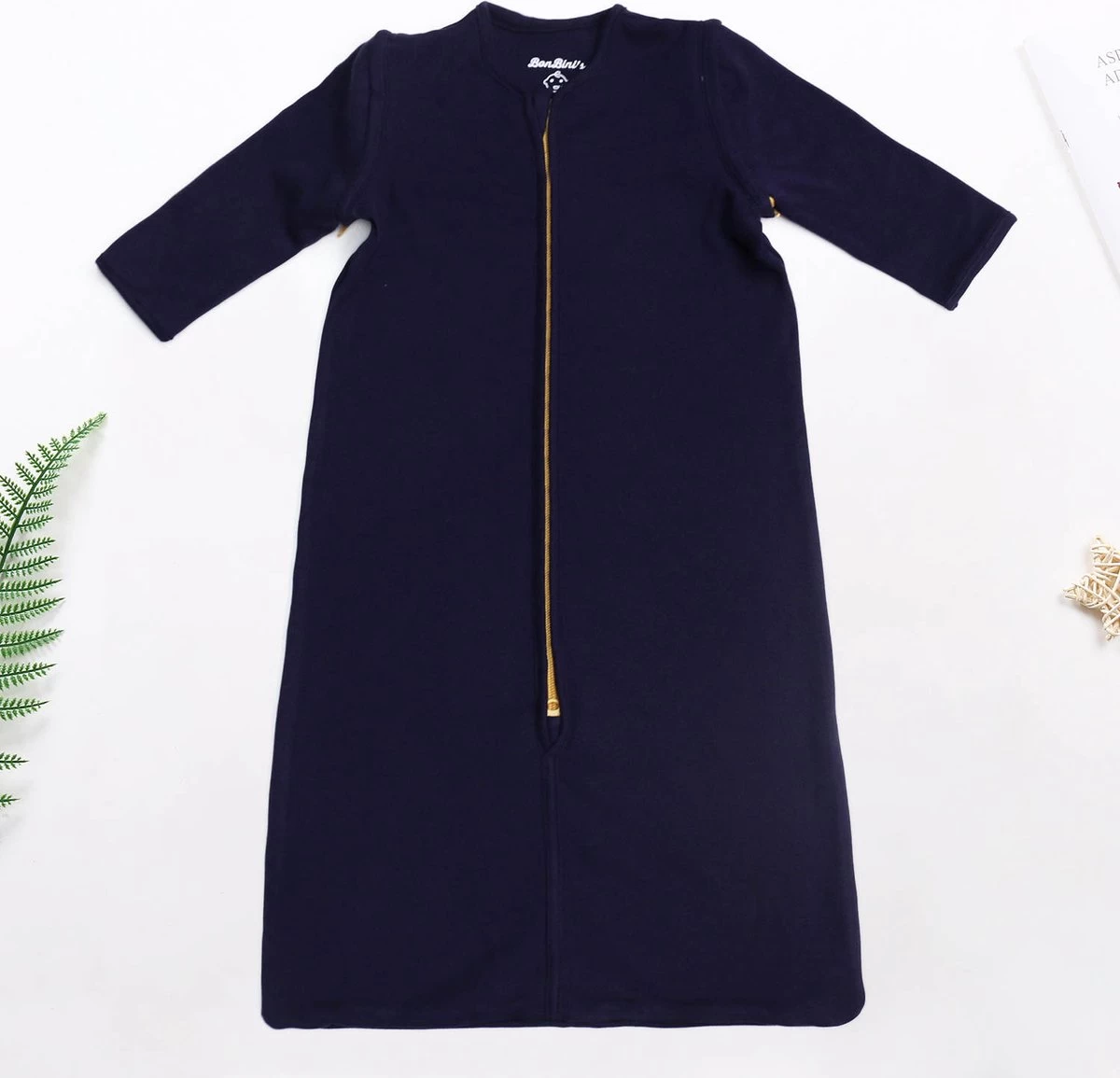 “De kwaliteit die je van BonBini’s gewend bent nu in een heel bijzonder “”jasje””, hier is de Darkblue Dreams 4 seizoenen baby slaapzak.