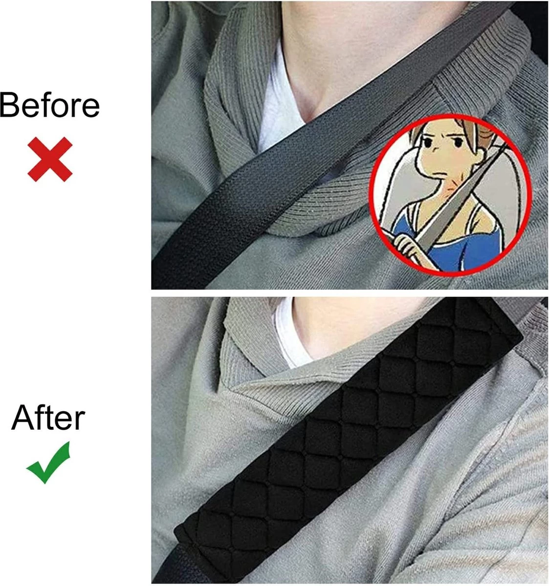 Zacht en comfortabel: gemaakt van hoogwaardig pluche, zacht en comfortabel zonder pluisjes. Het kan de beperking van de veiligheidsgordel verlichten en de druk op de schouder effectief verminderen.