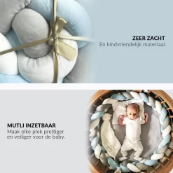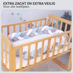 Een wiegje is natuurlijk gemaakt van harde materialen en hoewel baby’s natuurlijk wel tegen een klein stootje kunnen wil je ze het liefst volledig beschermen. Je kunt deze bumper gemakkelijk langs de randen van de wieg neerleggen zodat de baby in ieder geval niet zijn of haar hoofdje stoot in haar slaap of tijdens het spelen.