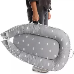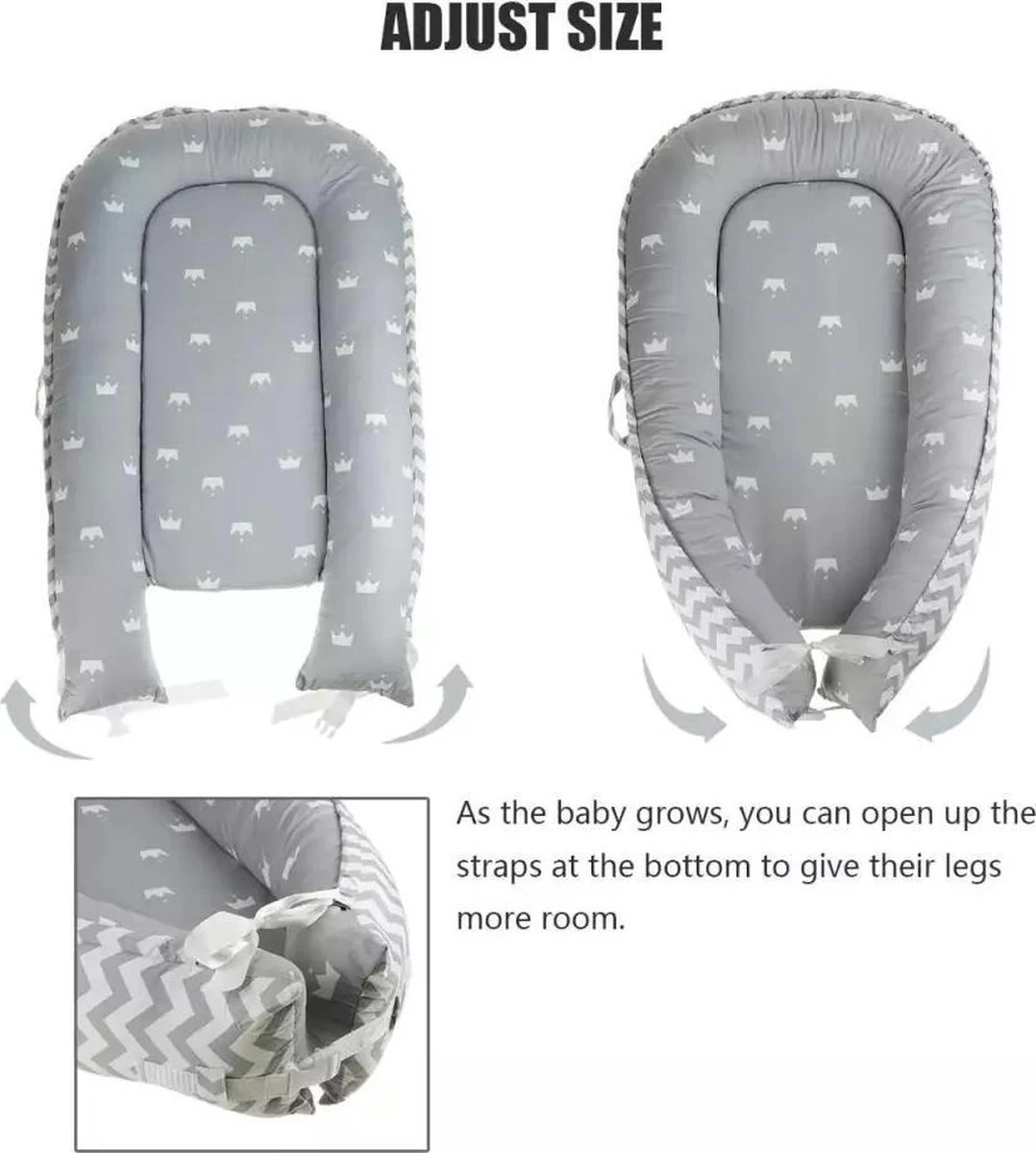 Het voordeel van onze babynestje’s is dat je het overal mee naar toe kunt nemen. Als je dus op visite gaat en je kindje moet precies in die tijd slapen, kun je de baby heerlijk in zijn of haar eigen draagbare bedje neerleggen. Door de vertrouwde geur van het babynest zal je kindje in no time in slaap vallen terwijl jij gezellig met je familie of vrienden zit te kletsen. Daarbij hoef je je geen zorgen te maken of je kindje wel veilig ligt want door de opstaande randen kan je kindje nergens vanaf rollen en zich bezeren. Het nestje kan ook in de reiswieg of een (camping)bedje gelegd worden voor een extra geborgen gevoel.