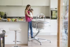 De Chicco Baby Hug 4in1 is gemakkelijk om te vormen naar wiegje, relax, hoge stoel en eerste zetel, om ouders en kindje vanaf de geboorte te vergezellen tijdens de verschillende momenten van de dag thuis.