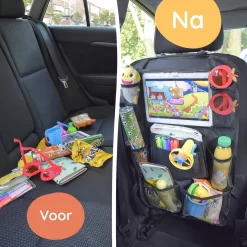Ben jij ook klaar met de rotzooi die je kinderen achterin maken op vakantie? En ben jij op zoek naar een manier om je achterbank opgeruimd te houden. Dan is deze Dentools auto organizer perfect voor jou. Met deze organizer ben je voorzien van een iPad opberg vak, waarin je iPad nog bruikbaar blijft en dus een film kan kijken zonder de Ipad vast te houden, veel opbergvakken waarin je het overzicht van de inhoud behoudt, en ook nog eens een remedie tegen vieze voetafdrukken tegen je stoelen. Kortom, een ideale manier om je achterbank georganiseerd en speels te houden!