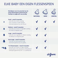 Small: vanaf 0 maanden voor normale drinkers of voor snelle drinkers. Geschikt voor dunne voeding zoals melkvoeding (borstvoeding of met melkpoeder). 2 stuks per verpakking. De speen is vervaardigd uit zacht, veilig BPA-vrij siliconen materiaal. Ontwikkeld door Difrax medisch team. Tip: Met de 1-2-3 speen en 1-2-3 ring van Difrax bepaal je de drinksnelheid van je baby, ook tijdens het voeden.
