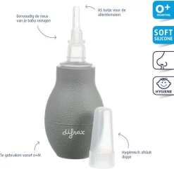 De Difrax neusjesreiniger verwijdert snel en eenvoudig snottebellen bij je baby of peuter. Ideaal bij een verstopte neus of verkoudheid. Inclusief extra opzetstuk. Te gebruik vanaf 0+ Maanden.