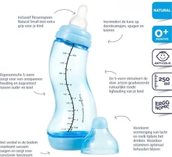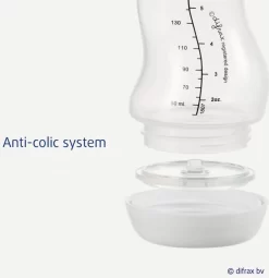 De unieke S-fles is vanaf de geboorte (ook bij premature baby’s) te gebruiken. De S-fles heeft een afschroefbare bodem. Zo kun je de roze S-fles makkelijk vullen met ijsblokjes moedermelk en na gebruik eenvoudig reinigen. Borstvoeding kun je rechtstreeks in de S-fles Natural kolven met de mamavriendelijke Difrax borstkolf. Het Anti-colic ventiel voorkomt vacuüm zuigen en zorgt voor een constante doorstroom van de flesvoeding. Dit vermindert de kans op boeren, spugen en buikkrampjes bij je baby.