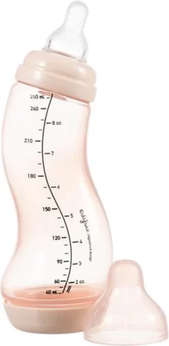 Difrax – S-Fles Natural – Babyfles Caramel – 0+ maanden – 250ml is de populairste babyfles voor baby, papa en mama. Het speciale anti-darmkrampjes ventiel en de S-vorm zorgen voor een constante stroom van flesvoeding. De Roze Anti-colic babyfles is vanaf de geboorte te gebruiken en ideaal in combinatie met borstvoeding.