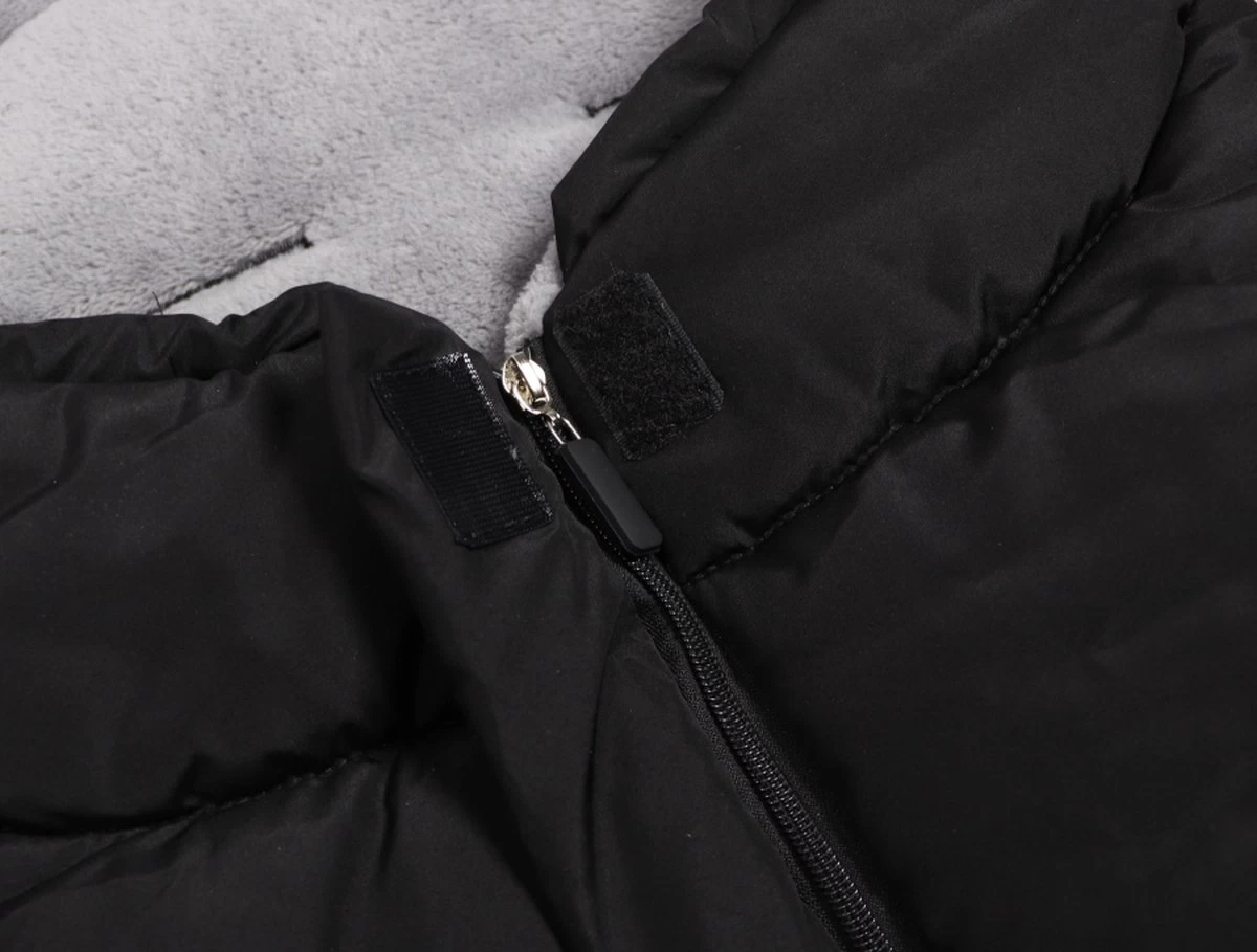 Met de Ding Deluxe Universele Kinderwagen Voetenzak zit je kindje heerlijk warm in de kinderwagen!Deze ruime voetenzak is geschikt voor een buggy of wandelwagen met een 3- of 5-punts veiligheidsgordel. Hij heeft handige openingen waar de gordels doorheen gehaald kunnen worden. De voetenzak heeft een rits aan de voorkant en een extra klittenband. De heerlijke zachte stof zorgt ervoor dat je kleine extra comfortabel en warm in de kinderwagen zit/ligt.