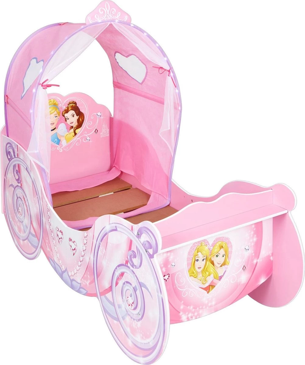 Koetsbed Disney Princess van MDF met ledverlichting, geschikt voor een matras van 140×70 cm (niet inbegrepen). Bedbodem inbegrepen.