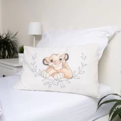 Disney Lion King BABY Dekbedovertrek. Lief, katoenen baby dekbedovertrek van The Lion King. Nala en Simba zijn grote vrienden en dat is te zien aan deze leuke afbeelding. Zowel het kussensloop als de overtrek hebben een dubbelzijdige print, waardoor er afgewisseld kan worden met het opmaken van het ledikantje. Voorzien van ritsen, zodat er geen openingen zijn waar je kindje in kan kruipen. Een geweldige aanwinst voor elke babykamer en een leuk cadeau om te geven met een babyshower of als cadeau bij de kraamvisite.