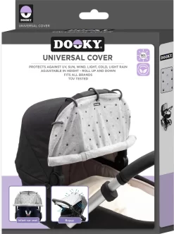 Met de Original Dooky creëer je gemakkelijk een rustige en vredige omgeving voor je kindje zodat het geen last heeft van licht, wind, zon, geluid, lichte regen en andere omgevingsinvloeden. De Dooky is universeel en eenvoudig binnen enkele seconden te bevestigen aan je autostoeltje groep 0+, de kinderwagen en zelfs de buggy! Door het unieke en geregistreerde ontwerp is de Dooky gemakkelijk in elke gewenste hoogte verstelbaar. Haal het zonlicht uit het gezicht van je kindje door simpelweg je Dooky naar de gewenste hoogte op te rollen (klittenband). Als je kindje slaapt, rol je hem helemaal naar beneden om zo een donkere en rustige omgeving te creëren. Met de koordjes aan de onderkant kun je je Dooky extra goed vastmaken indien het hard waait. De Dooky is gemaakt van 100% katoen, en heeft een UV-beschermende factor van UPF40+ en filtert meer dan 95% van de schadelijke UVA en UVB stralen. Laat je kind nooit zonder toezicht. Zorg dat je kind het niet te warm heeft: zet je kind niet lang in de volle zon en zorg altijd voor voldoende ventilatie.