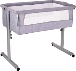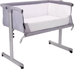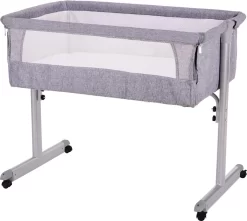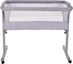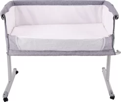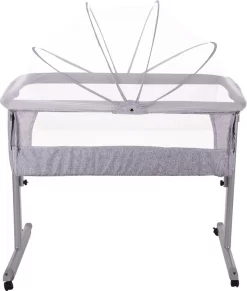 Het wiegje heeft vier wielen met remmen zodat hij stevig staat, maar tegelijkertijd ook makkelijk te verplaatsen is aan bed of juist van het bed af. Het wiegje heeft een muskietennet en een zijkant van mesh materiaal, waardoor je je kleine altijd kan blijven zien. Het muskietennet is makkelijk met 2 knopjes vast te drukken en ook weer te verwijderen. Daarnaast kan de mesh zijkant makkelijk opengemaakt worden zodat je veilig samen met je baby kan slapen.