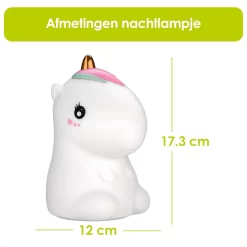 Voor jouw kindje wil je toch ook alleen het allerbeste? Laat hem rustig en veilig slapen terwijl deze lichtgevende Eenhoorn over hem of haar waakt en de kamer een beetje verlicht. Dit nachtlampje is circa 17.3 cm hoog en 12 cm breed.