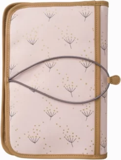 In dit praktische etui passen een pakje vochtige doekjes en er zit een waterafstotend verschoningsmatje bij. Het etui (dat eruitziet als een stijlvolle clutch) heeft een extra vakje met een rits. Een stevige elastiek houdt het etui dicht.