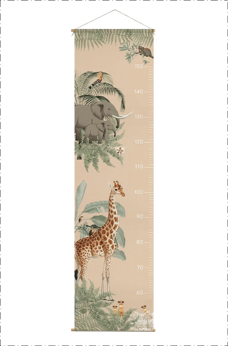 Met deze vrolijke groeimeter in jungle stijl maak je de junglekamer van je kindje helemaal compleet én volg je elke gegroeide centimeter op de voet. Of misschien wel 3 centimeter wanneer er een groeispurt plaatsgevonden heeft. Multifunctioneel deze jungle groeimeter!