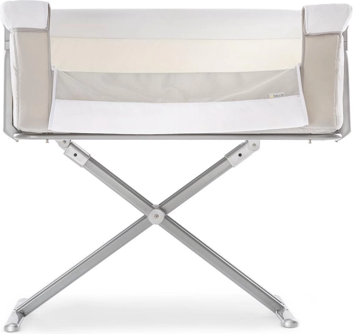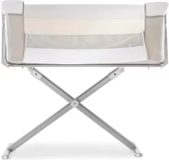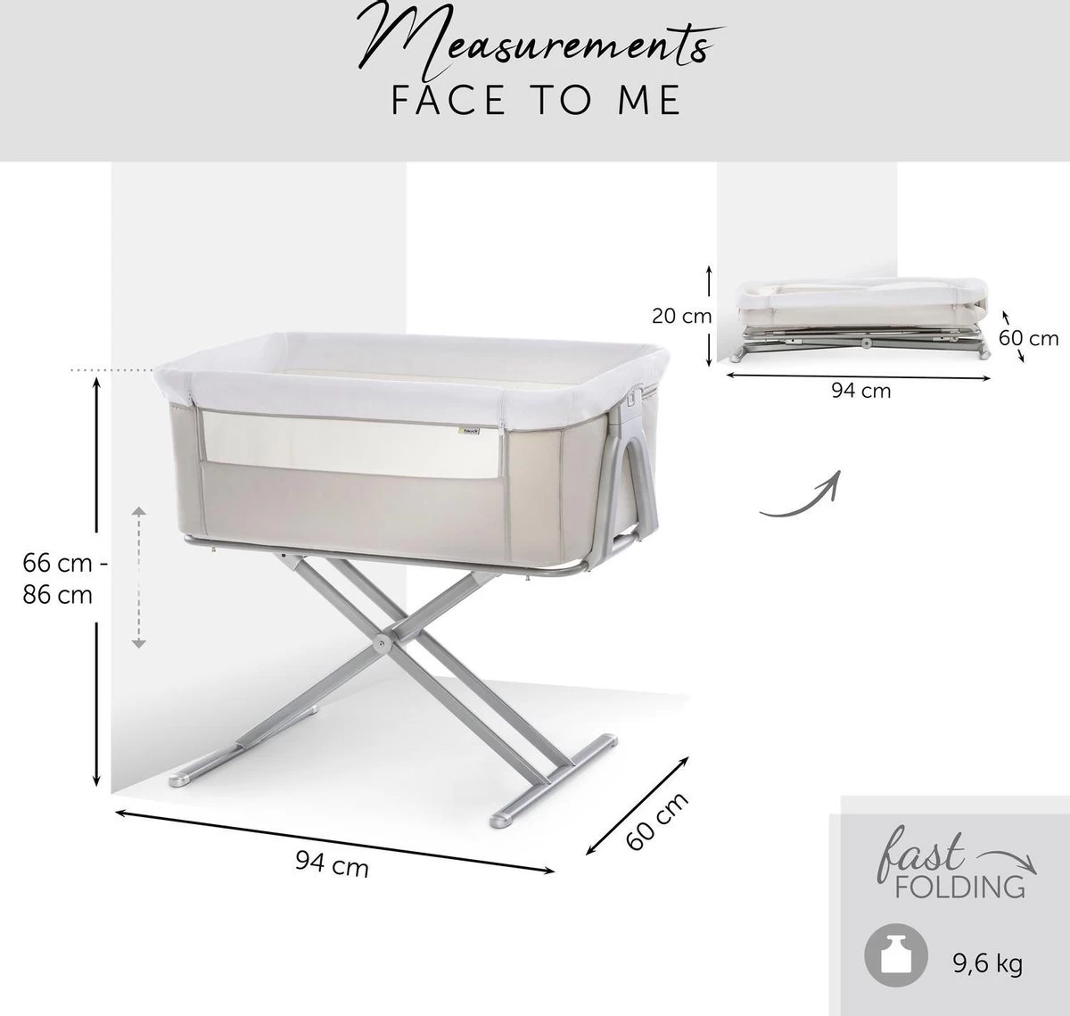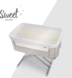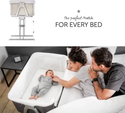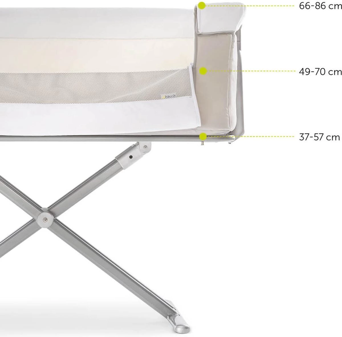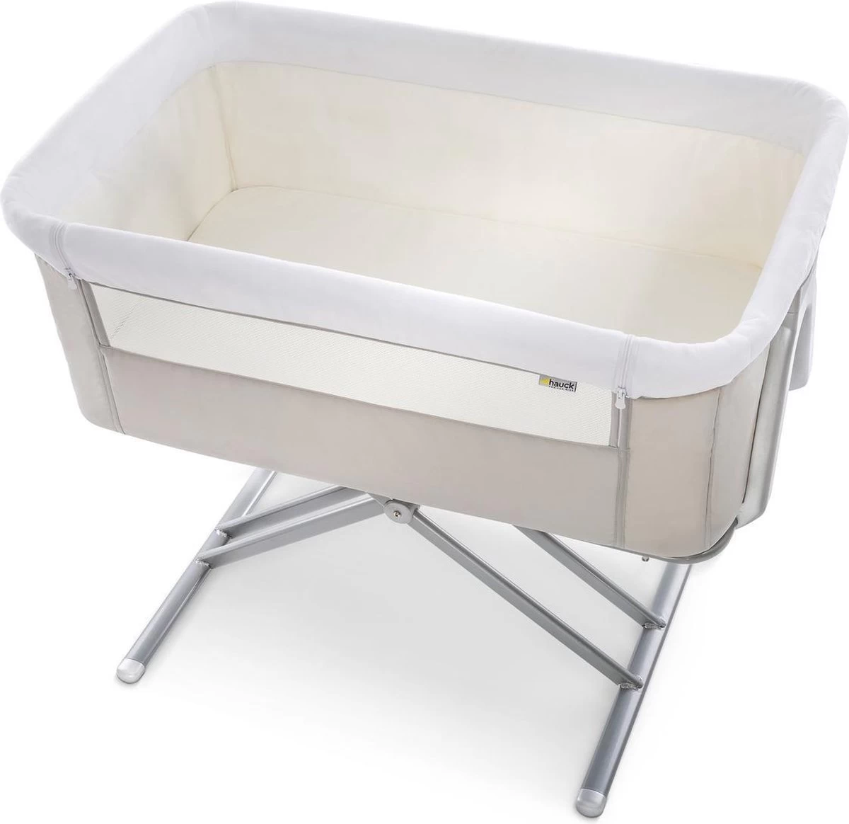 Hauck heeft het zeer praktische Face to Me campingbedje voor je pasgeboren baby voor direct naast je bed. Heel dichtbij elkaar zijn moeder en kind met deze inklapbare reiswieg. Doordat je het zijelement naar beneden kan schuiven, kan je eenvoudig je kleine uit de wieg halen om te voeden en weer terugleggen voor een zachte nachtrust. Je baby voelt jouw nabijheid, wat erg belangrijk is in de eerste maanden van de baby. De Face to Me van Hauck biedt maximale bewegingsvrijheid en optimaal comfort. Dit campingbedje kan je middels een bevestigingssysteem verbinden met het bed voor de volwassenen en het babywiegje voor extra veiligheid. En wat ook heel praktisch is is dat het campingbedje zeer compact kan worden ingeklapt met slechts enkele handelingen. Opmerking: de bovenrand van het neergelaten zijgedeelte moet zich altijd onder de matras van het volwassene bed bevinden.