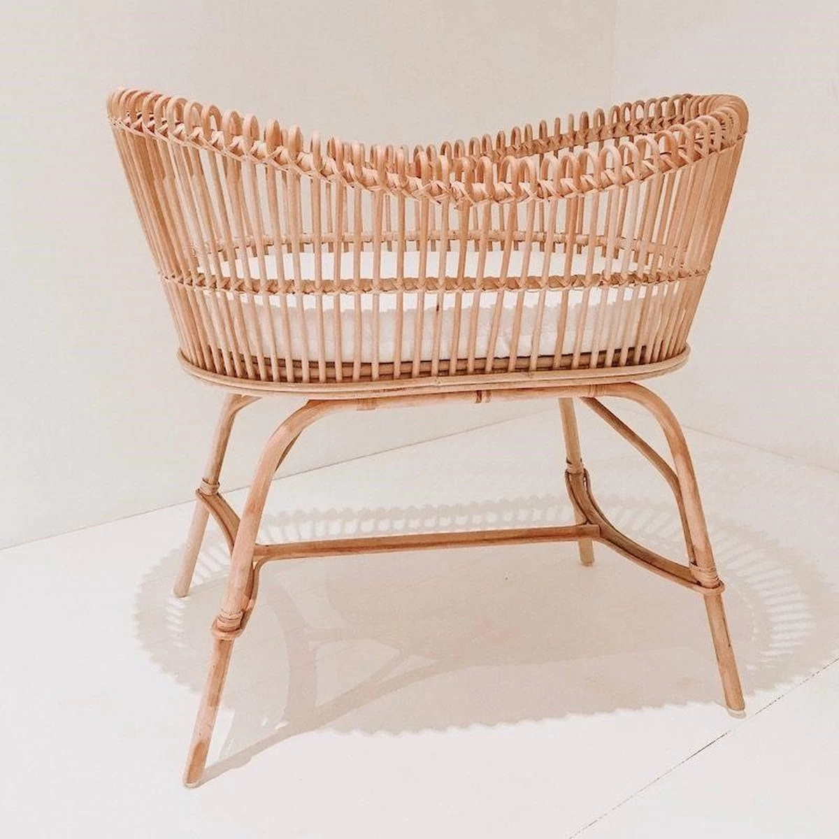 Wieg Lena staat perfect in elke kinderkamer. Voor een Scandinavische look of een bohemien thema is deze wieg onmisbaar. Dit wiegje past door het design niet alleen in de kinderkamer, maar ook in andere ruimten. Wieg Lena is geschikt voor baby’s tot en met acht maanden. Als je baby kan draaien en zich kan optrekken, is het tijd voor een ledikant. De wieg wordt geleverd met het bijbehorend matras.