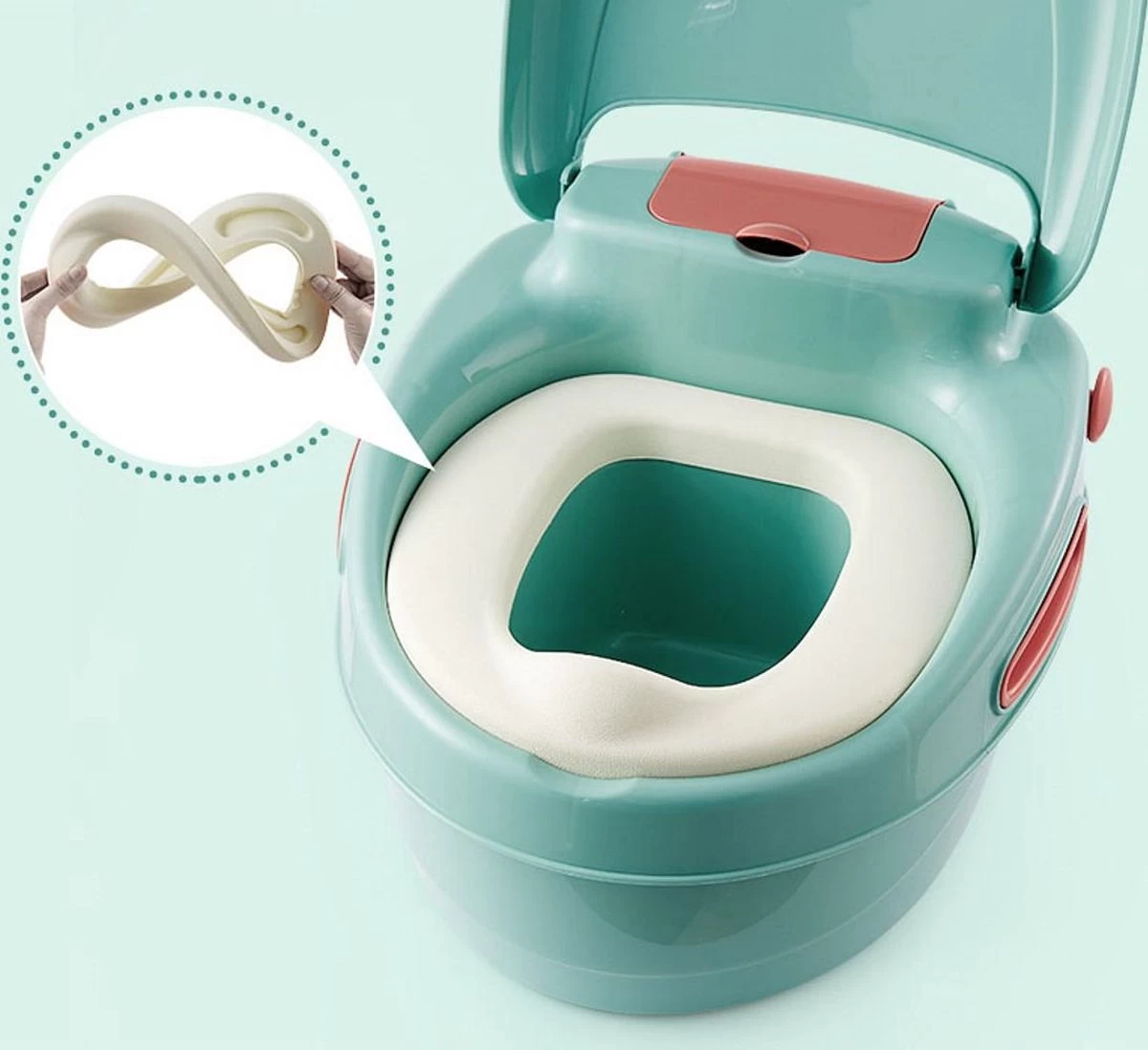 Dit multifunctionele draagbare plaspotje met deksel is veel meer dan alleen een potje: het kan ook dienen als wc verkleiner met trapje/opstapje voor jouw kindje. De zitting heeft een antislip kunstlederen (PU) Wc-bril voor maximaal zitcomfort en schoonmaakgemak. Je kunt het potje gemakkelijk en veilig op een toilet voor volwassenen bevestigen met het 4-punts mechanisme.