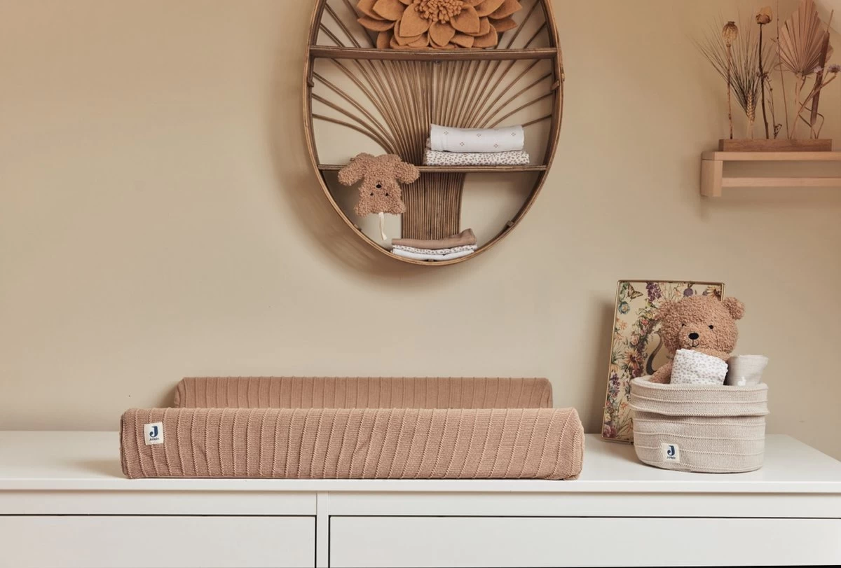 Met een baby is een aankleedkussen een veel gebruikt item. Om ervoor te zorgen dat je kleintje lekker zacht ligt, combineer je dit met een aankleedkussen hoes. En hoe leuk is deze gebreide aankleedkussenhoes in de kleur Biscuit uit de Pure Knit collectie van Jollein.