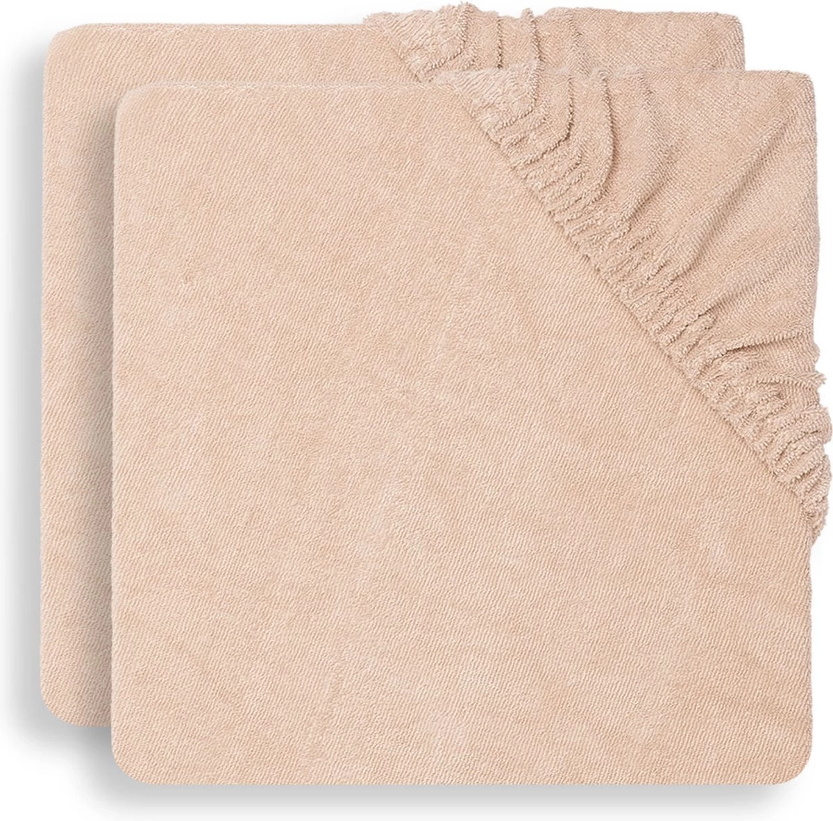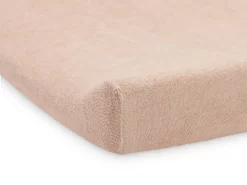 100% badstofkatoen. Aan de randen zit elastiek net als bij een hoeslaken. Zo blijft het goed zitten.