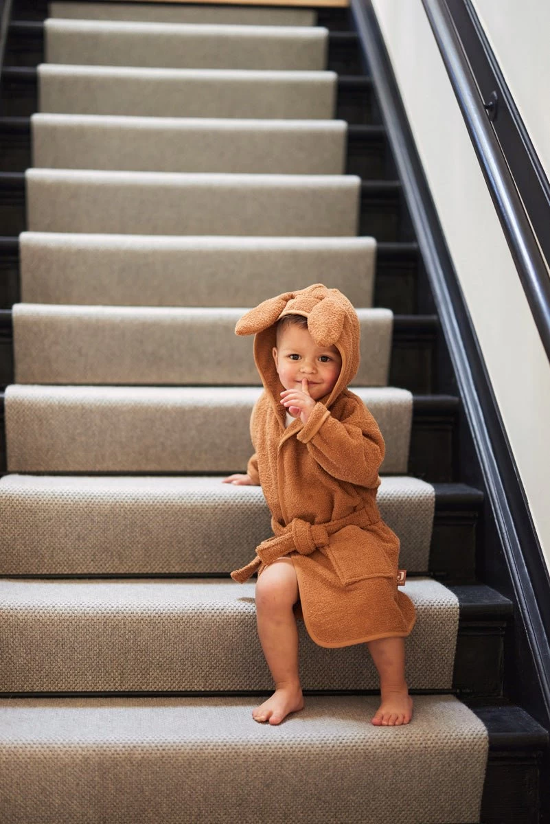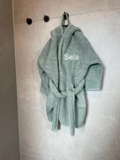 Verkrijgbaar in vijf trendy kleuren. Shop het badstof badjasje in roze, caramel, nougat, grijs, groen en blauw