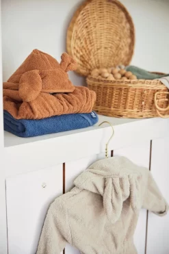 Verkrijgbaar in vijf trendy kleuren. Shop het badstof badjasje in roze, caramel, nougat, grijs, groen en blauw