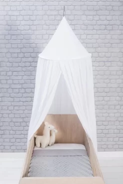 Deze prachtige vintagelook klamboe maakt van het babybed een knusse slaapplek. En je zult zien: zodra je de klamboe hebt opgehangen is de babykamer af. Het geeft sfeer en geborgenheid.