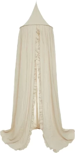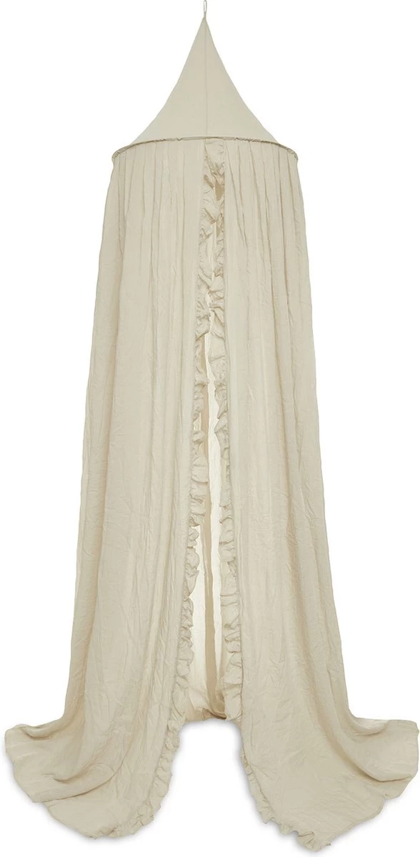 Deze prachtige vintagelook klamboe met ruffles maakt van het babybed een knusse slaapplek. En je zult zien: zodra je de klamboe hebt opgehangen is de babykamer af. Het geeft sfeer en geborgenheid.