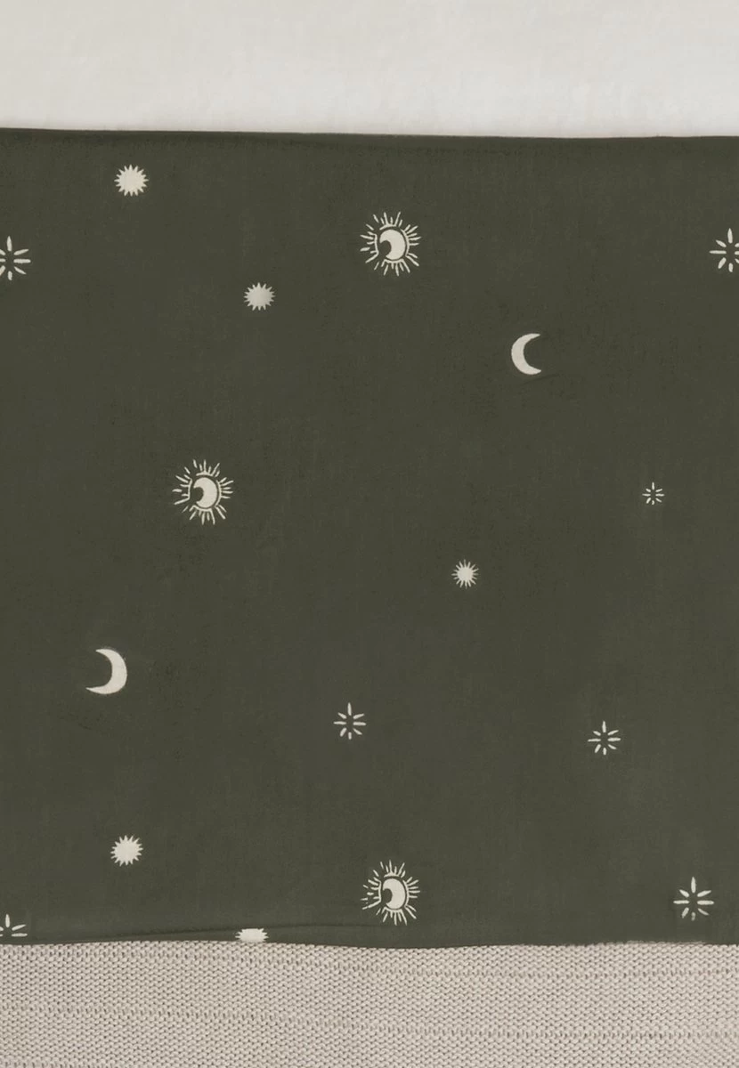 Wat zal jouw kleintje lekker slapen onder dit lakentje met all-over Stargaze print! Het laken heeft een prachtige opdruk met een zonnetje, maantje en sterretje.