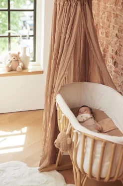Deze vintagelook sluier is verkrijgbaar in prachtige trendy kleuren: wit, roze, groen, nougat, grijs, roest, caramel en mosterdgeel. Daarmee kun je vast en zeker de kiezen die past bij het kleurenpalet van de babykamer. Bovendien hebben we er bijpassende lakentjes, hoeslakens en dekentjes bij. Veel kleuren komen terug in de verschillende Jolleinlijnen. Dat combineert gemakkelijk. Hoe instagrammable wil jij de babykamer? Je combineert deze Nougat kleurige sluier goed met de Stargaze collectie.