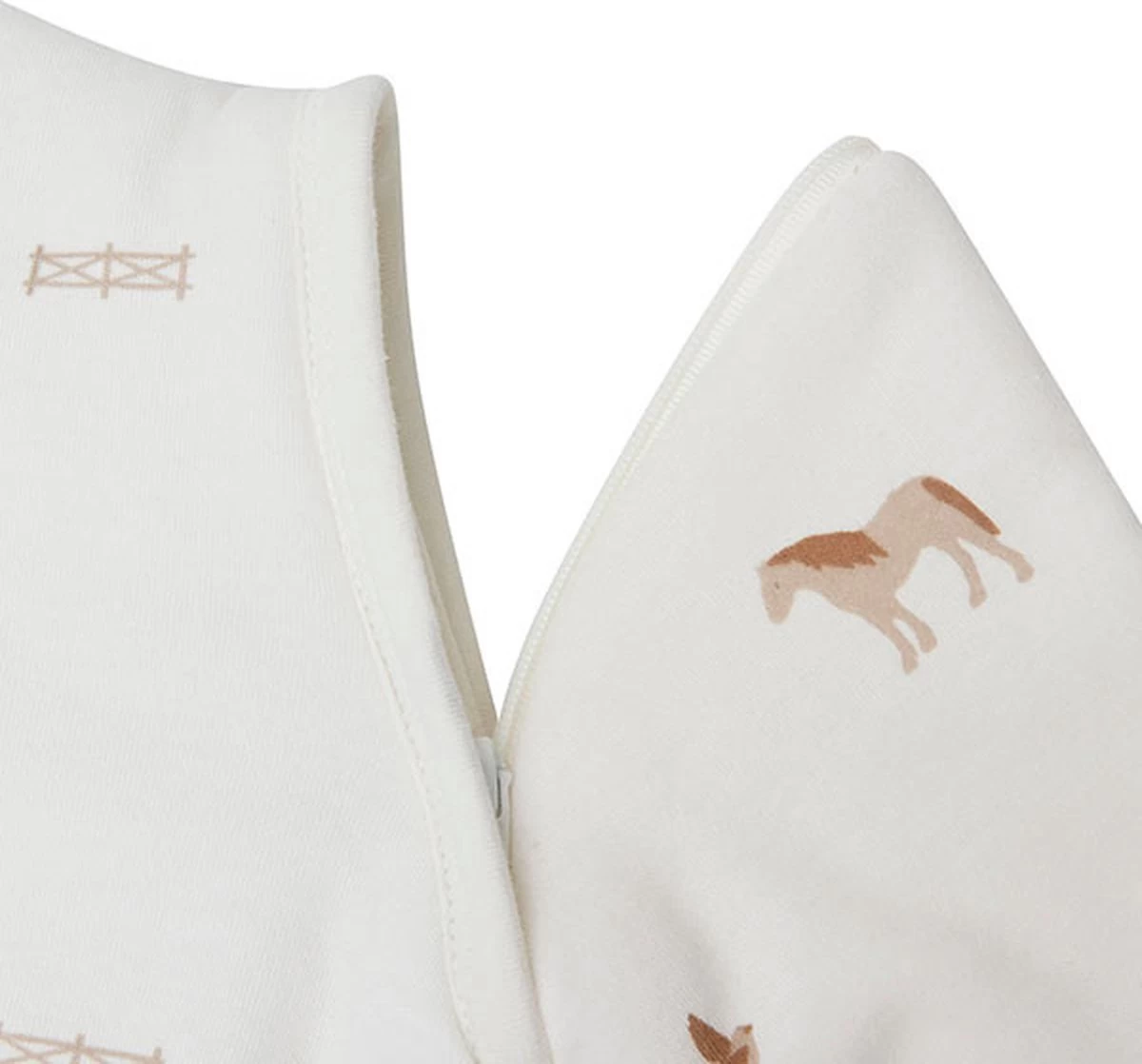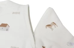 De slaapzak heeft een Ivory ondergrond en de Farm items maken je slaapzak extra kleurrijk.