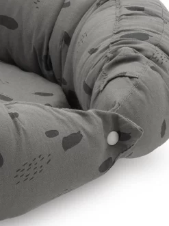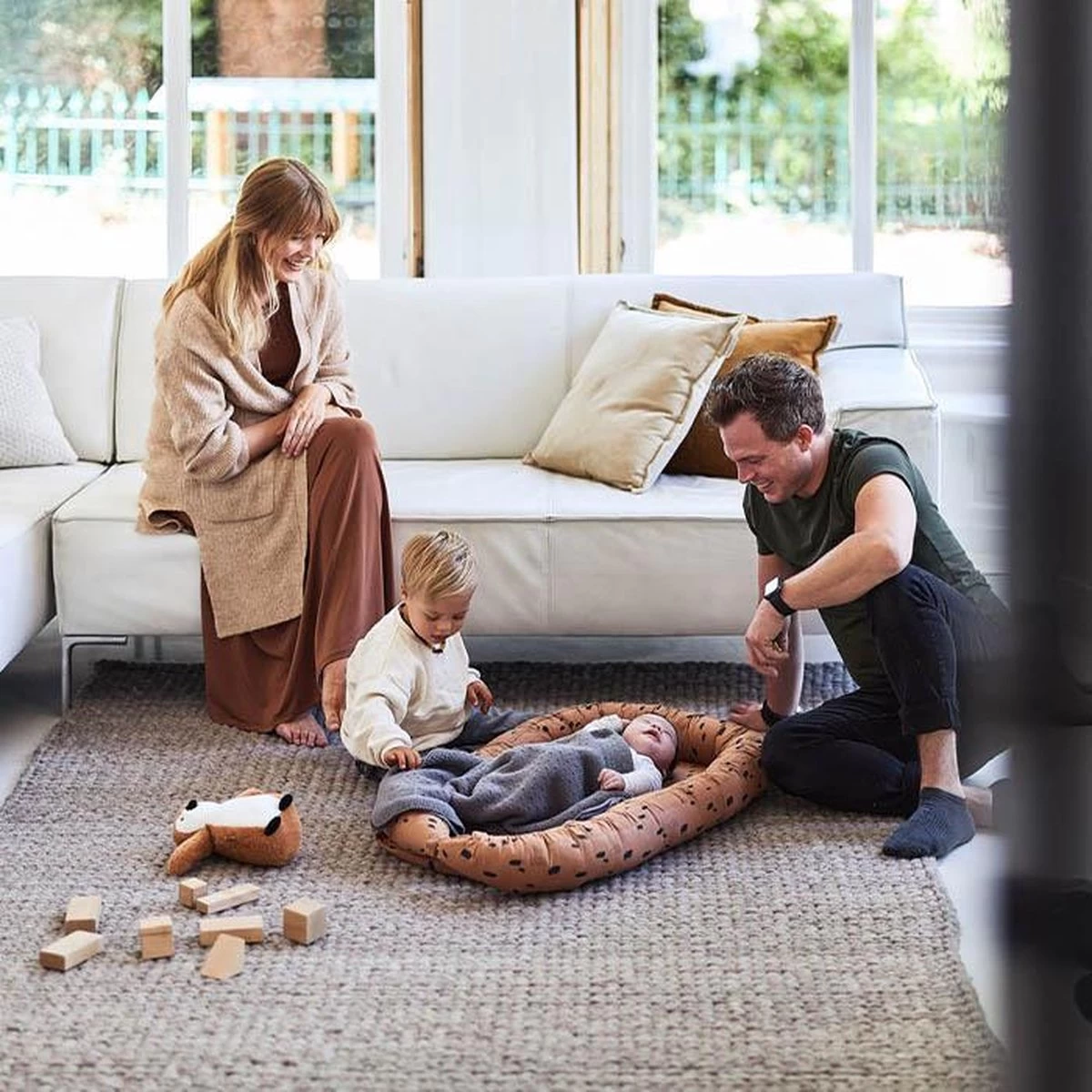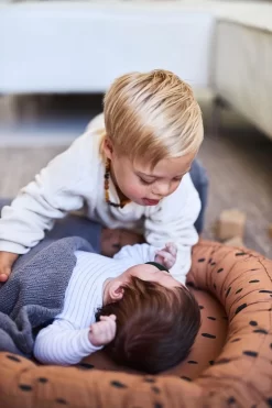 Je baby ligt heerlijk in dit stoere babynestje. In bruin of grijs met zwarte spots all over. De opstaande gewatteerde rand geeft jouw baby een veilig en geborgen gevoel. Met zo’n nestje ligt je baby gezellig bij je op de bank of knus in de box. Het is heel handig om mee te nemen als je op pad gaat. Zo kan je jouw baby overal makkelijk wegleggen op een comfortabel plekje zonder dat je baby wegrolt.