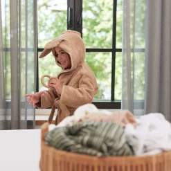 Verkrijgbaar in zes trendy kleuren. Shop het badstof badjasje in roze, caramel, nougat, grijs, groen, biscuit en blauw