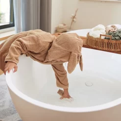 Het badjasje gebruik je al bij de leeftijd van 1 jaar en past tot ongeveer een leeftijd van 2 jaar. Dit is ook afhankelijk van hoe groot jouw kindje is