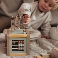 Deze leuke houten activiteitenkubus zal jouw kindje vermaken, uitdagen en de hand-oog coördinatie stimuleren. Deze kubus bevat een onder andere een vormenstoof, een telraam, kralenspiraal en tandwieltjes. Deze kubus zal zorgen voor urenlang vermaak van jouw kleintje! De activiteitenkubus past in het Farm thema. Je kindje kan er lekker thuis mee spelen, maar je kunt de activiteitenkubus ook meenemen als jullie een playdate hebben,
