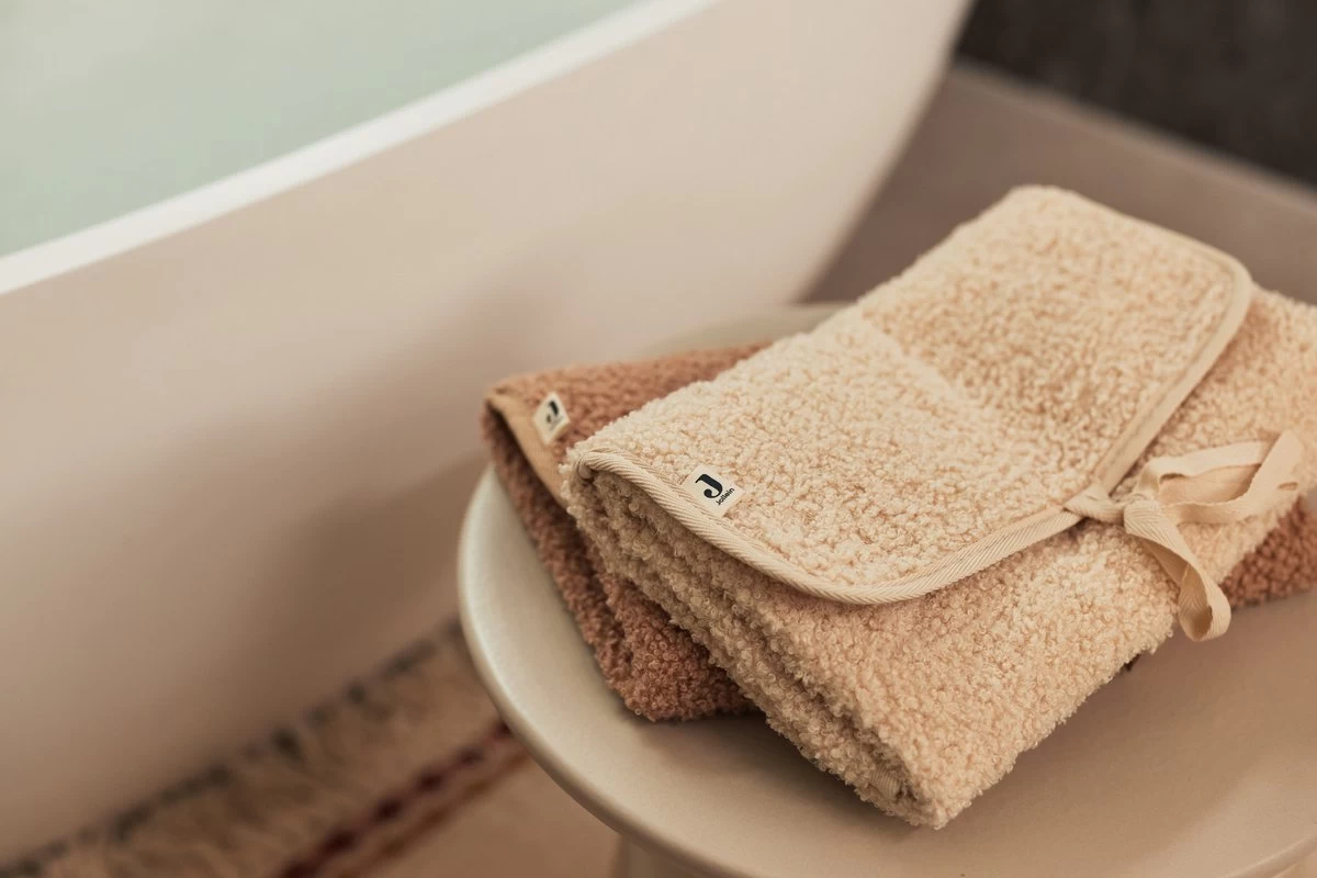 Het Boucle verschoningsmatje sluit goed aan bij de andere Boucle items maar ook perfect bij de Embroidery tas van Jollein.
