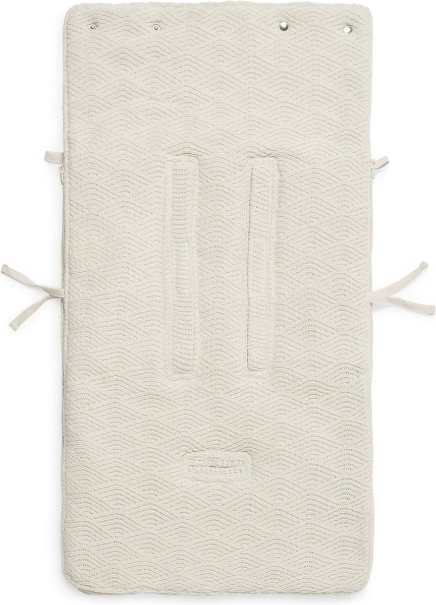 De River knit voetenzak is aan de buitenzijde van prachtig breisel in golfjespatroon en is lekker zacht aan de binnenkant door de teddystof. De trendy kleuren en de rijke breisels van deze river knit lijn zijn heel stijlvol. Een voetenzak is echt een uitkomst. Je baby leg je gemakkelijk in de voetenzak door de zak eerst helemaal open te ritsen. Ook haal je jouw baby makkelijk uit de autostoel door de voetenzak helemaal open te ritsen. Van de bovenkant maak je met één drukknoopje supersnel een mutsje, zodat ook het hoofdje warm blijft zodra je de autostoel buiten draagt of een wandeling maakt. Om er voor te zorgen dat je baby het in de auto niet te warm krijgt open je de rits van de zak zover als nodig. Kortom: een super handige comfortbag voor je baby. De voetenzak is voorzien van openingen in de achterkant om het vastmaken van de gordels extra makkelijk te maken. Het is een universele voetenzak voor de Maxi Cosi en alle andere categorie 0 autostoeltje met drie of vijfpuntsgordel. Je kunt de voetenzak ook in de kinderwagen gebruiken. Zo is je baby in een mum warm ingepakt voor de wandeling.