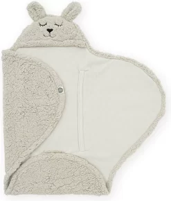 Wikkel je baby in deze omslagdoek en sluit de deken met de praktische klittenbandstroken. Zet het mutsje erbij op en zie daar, die schattige oortjes en dito konijnengezichtje op het mutsje. Echt te lief!