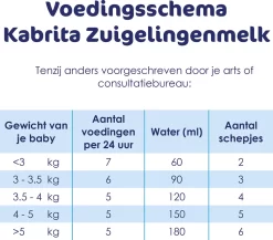 Borstvoeding is de beste voeding voor je baby. Lukt het niet (meer) om borstvoeding te geven of wil je het (deels) afbouwen, dan kan Kabrita Zuigelingenmelk (0-6 maanden) worden gebruikt vanaf de geboorte. Kabrita 1 Zuigelingenmelk wordt gemaakt van geitenmelk van hoge kwaliteit.