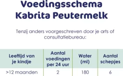 Borstvoeding is de beste voeding voor je baby. Kabrita 3 Peutermelk is geschikt voor kindjes vanaf 12 maanden. Kabrita 3 Peutermelk wordt gemaakt van geitenmelk van hoge kwaliteit. Het bevat vitamines, mineralen en zorgvuldig geselecteerde ingrediënten zoals geitenwei-eiwit, omega-3-vetzuren (DHA) en prebiotische vezels (GOS).